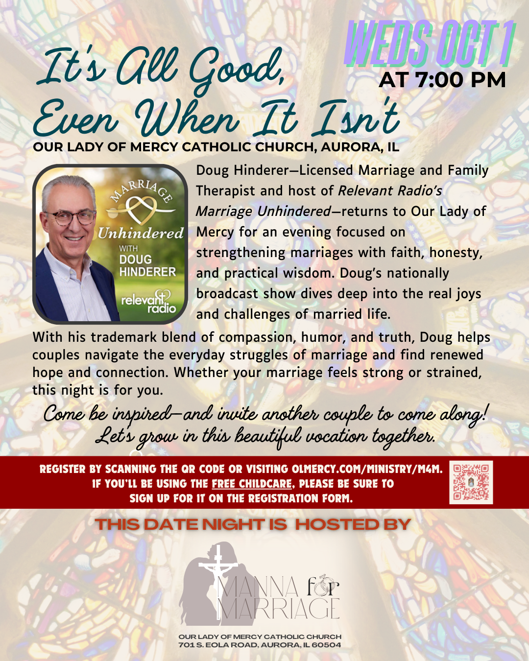 That’s why we’re excited to invite you—or the couples you know and love—to It’s All Good Even When It Isn’t with Doug Hinderer, Licensed Marriage & Family Therapist and host of Relevant Radio’s Marriage Unhindered.