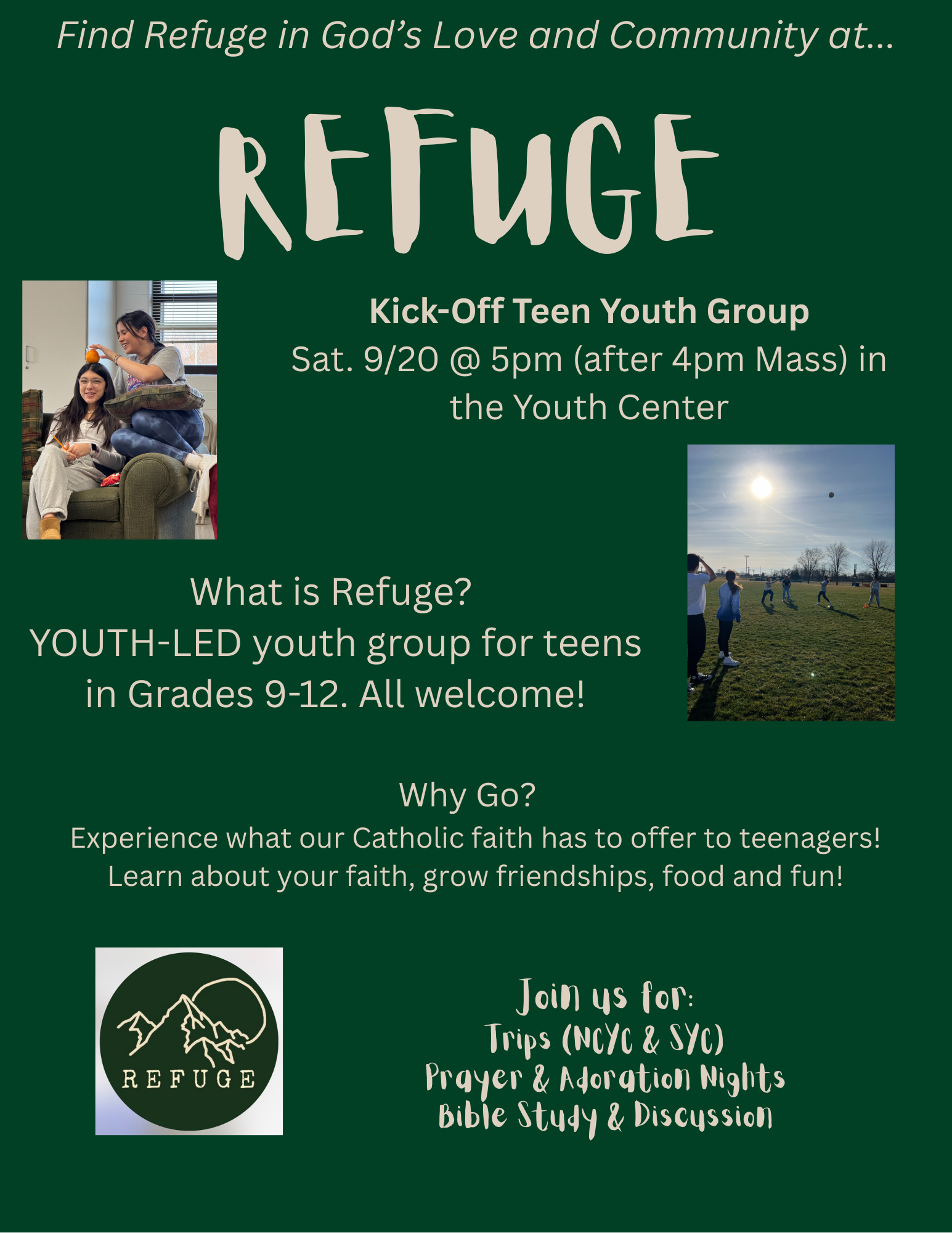 OLM High School Teens are invited to our Kick-Off REFUGE Youth Group!